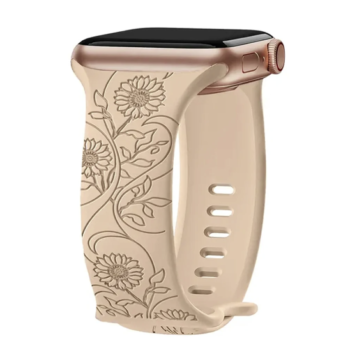 Floral Engraved Silicone Strap for Apple Watch – Fits All Series & Sizes