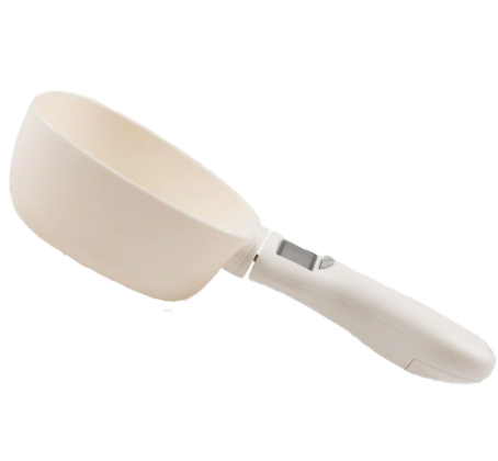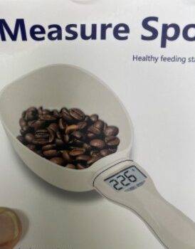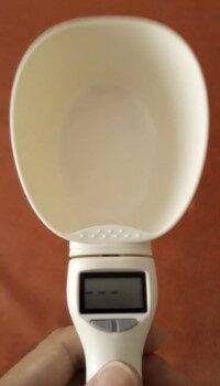I think a wonderful idea, but sticks. I cannot use the scoop to scoop and weigh, I havs to use another scoop to gently put the dog bisciut in and it seems to get to around 65g and stops, to by pass this I have to press scoop it goes up and then comes back to a weight…but this is mainly for our holidays so that I do not have to take scales with me to weigh my dogs meals!..Love the idea just needs tweaking!..I have lived with a set of digital scales without 75g on for an eternity..I am sure I can givean extra press to vet rhe right weight! As accurate as my salter kitchen scales..once pressed and added or taken food out to get 76g..